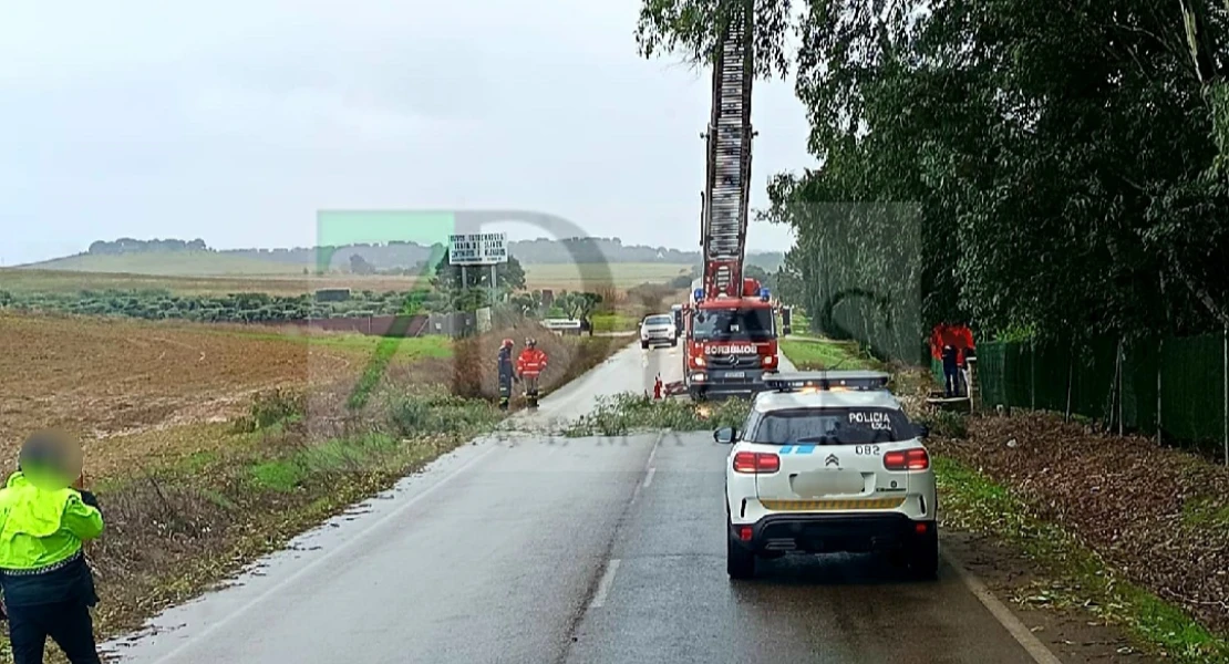 Efectivos de Bomberos de Badajoz se trasladaban este jueves, pasadas las 12:30 horas, hasta la BA-022, comúnmente conocida como carretera de La Corte en Badajoz, debido a que algunas ramas de un enorme árbol amenazaban con caer sobre la calzada, presentando un importante riesgo para el tráfico.