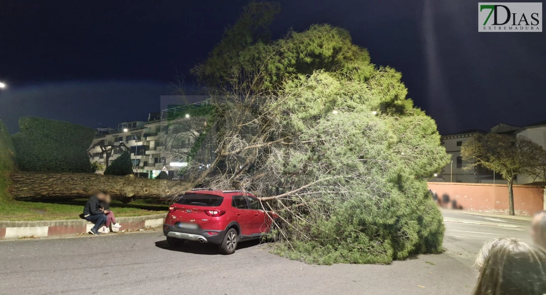 Un gran susto se ha vivido este domingo en Plasencia después de que un árbol de grandes dimensiones haya caído repentinamente sobre un vehículo que circulaba por la rotonda situada frente al CEIP Inés de Suárez.