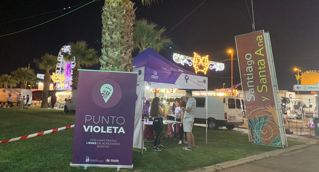 El ‘Punto Violeta’ es un proyecto que pone en marcha la Diputación de Badajoz, a través de la Oficina de Igualdad, y mediante la asistencia técnica especializada, para crear un espacio de referencia contra la violencia sexual en los grandes eventos que se desarrollen en las localidades de la provincia de Badajoz. Para ello, se cuenta con una carpa que constituye un punto de encuentro para atender los posibles casos de violencia sexual. El objetivo, establecer espacios seguros para las mujeres y concienciar a la población de la lucha contra las agresiones sexuales.