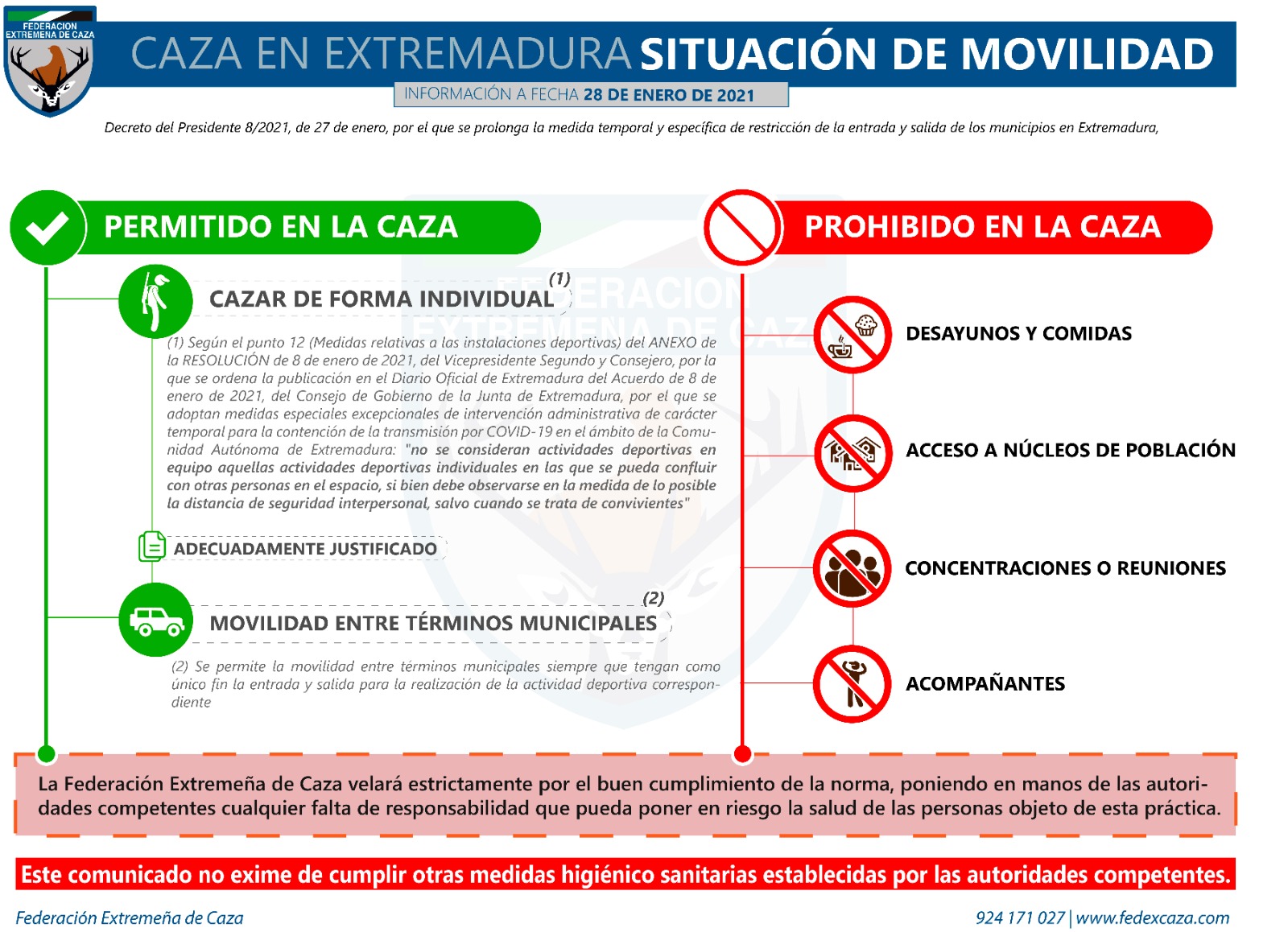La Federación Extremeña de Caza considera una gran noticia que la Junta de Extremadura haya tenido en cuenta las circunstancias que rodean las actividades que se desarrollan al aire libre, como es el caso de la caza. Y es que la flexibilización de las restricciones a la movilidad publicada en el Diario Oficial de Extremadura reconoce que se trata de acciones individuales en espacios abiertos, con el consiguiente riesgo cero de contagio.