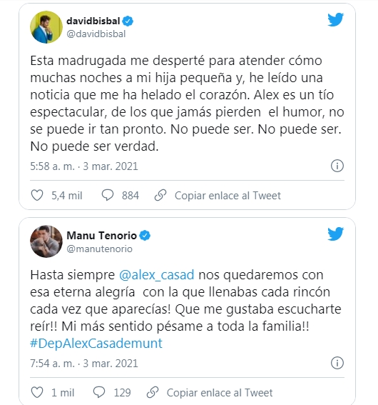 Tras conocer el triste fallecimiento gran parte de sus compañeros de OT 1 no han tardado en expresar sus condolencias y lamentar la muerte de Casademunt a través de sus redes sociales.