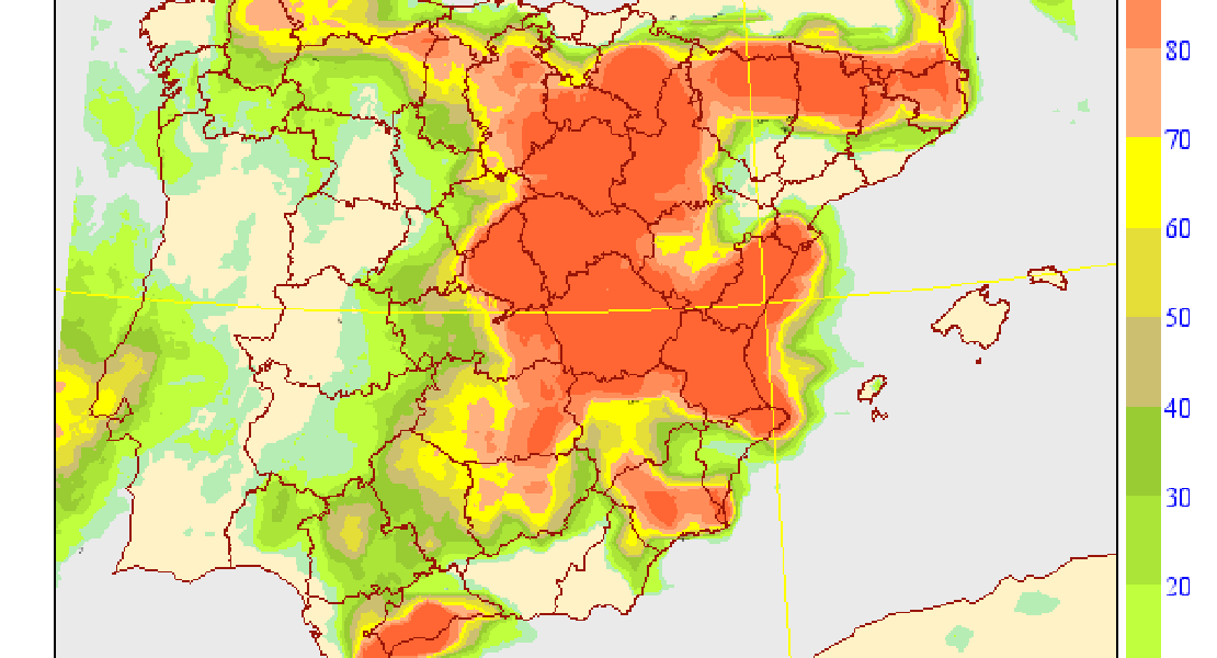 Cuenca, Guadalajara, Barcelona, Girona, Tarragona, Madrid y Navarra serán las provincias que estarán en riesgo naranja por lluvias que podrán registrar hasta 70 litros por metro cuadrado en una hora e incluso no se descarta que las tormentas vayan acompañadas de granizo. Mientras tanto Córdoba, Granada, Jaén, Málaga, Sevilla, Huesca, Teruel, Zaragoza, Albacete, Ciudad Real, Toledo, Lleida,Castellón y Valencia tendrán aviso amarillo por lluvias y tormentas que podrán acumular o superar entre 15 y 20 litros por metro cuadrado en una hora.