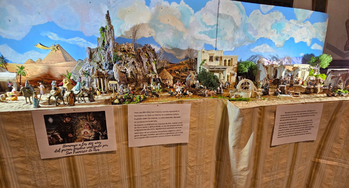 Por otro lado, en el Convento Franciscano se encuentra otro Belén, en este caso, realizado por primera vez por Yolanda Santaeulalia. "Hasta el año 2016 se ha montado en casa de mi suegra, desde entonces por diferentes motivos no se ha podido instalar allí, y este año, con la aprobación de D. Javier, propusimos montarlo en esta iglesia franciscana, porque a su vez, hemos querido hacer un homenaje a los 800 años del primer pesebre realizado por San Francisco de Asís”, alega la creadora.