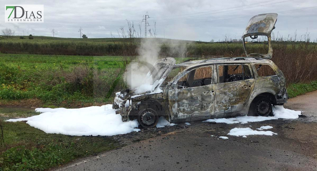 Esta misma mañana ardía un coche en la carretera que une Pueblonuevo del Guadiana y la pedanía pacense de Alcazaba, provocando la calcinación total del mismo.