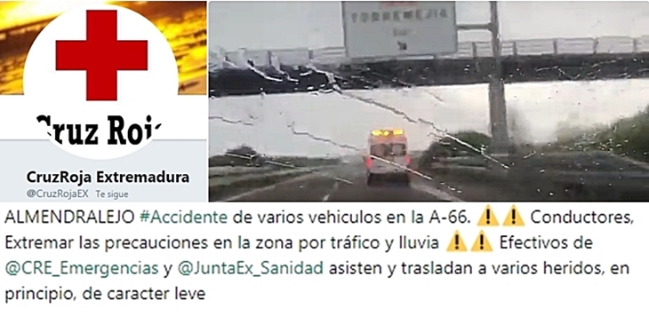 Cruz Roja Extremadura ha informado de un accidente por colisión múltiple ocurrido esta tarde en la A.66 (Autovía de la Plata), concretamente dentro del término municipal de Torremejía.