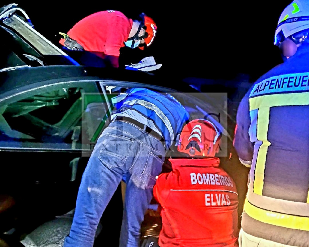 Efectivos de bomberos de Badajoz recibían pasadas las 21:15 horas de la noche del martes una llamada por parte del 112 alertando de un grave accidente. Se producía en la A6 en su punto kilométrico 155,20 dirección Lisboa a la altura de Caia (Portugal) a un kilómetro y medio de la capital pacense.