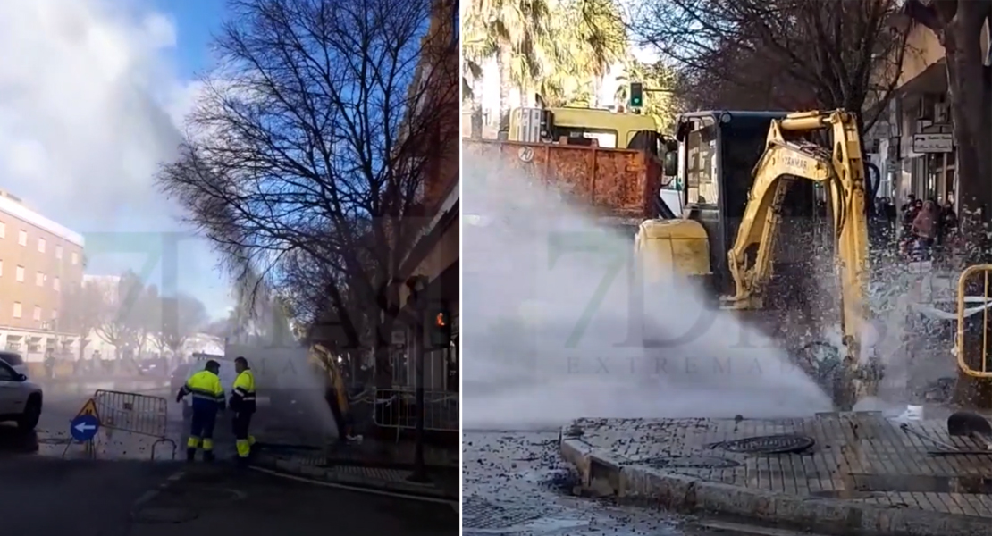 Minutos antes de las 14:00 horas, conductores y viandantes que transitaban por la avenida María Auxiliadora de Badajoz se veían sorprendidos por una gran columna de agua procedente de una tubería.