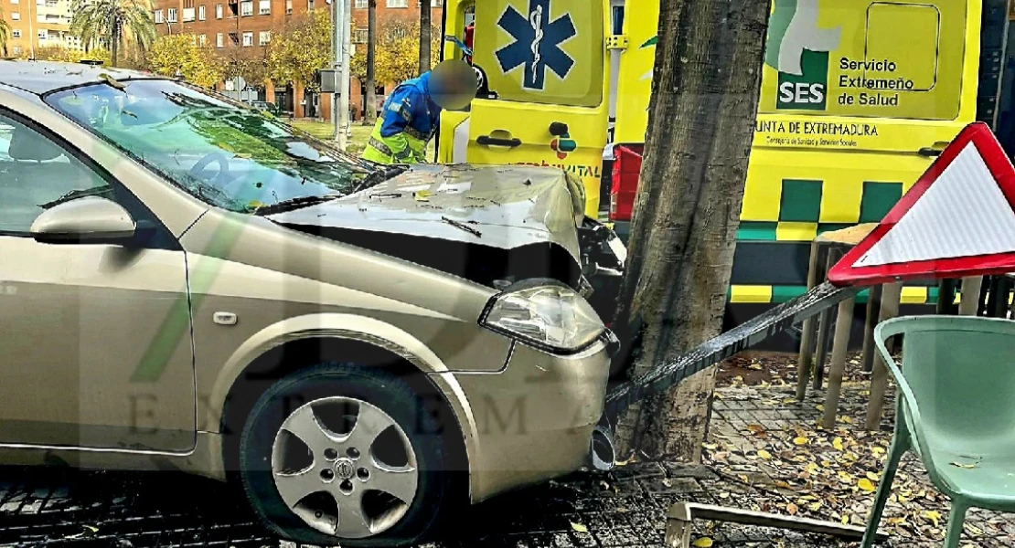 De forma conjunta, sanitarios del 112 Extremadura han asistido al conductor tras el fuerte choque, sin que haya sufrido lesiones graves.