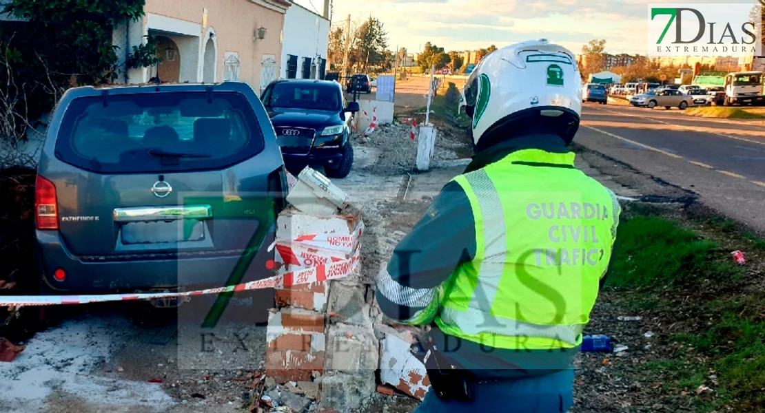 Concretamente en el punto kilométrico 1.8 un todoterreno de la marca Nissan se empotraba dirección Badajoz contra una vivienda, una salida de vía cuyas causas aún se desconocen.