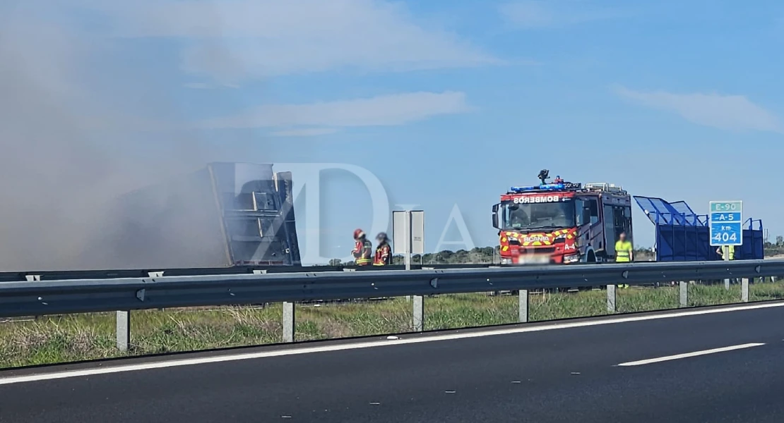 Un camión sufre un accidente y se incendia en la A-5 en Badajoz