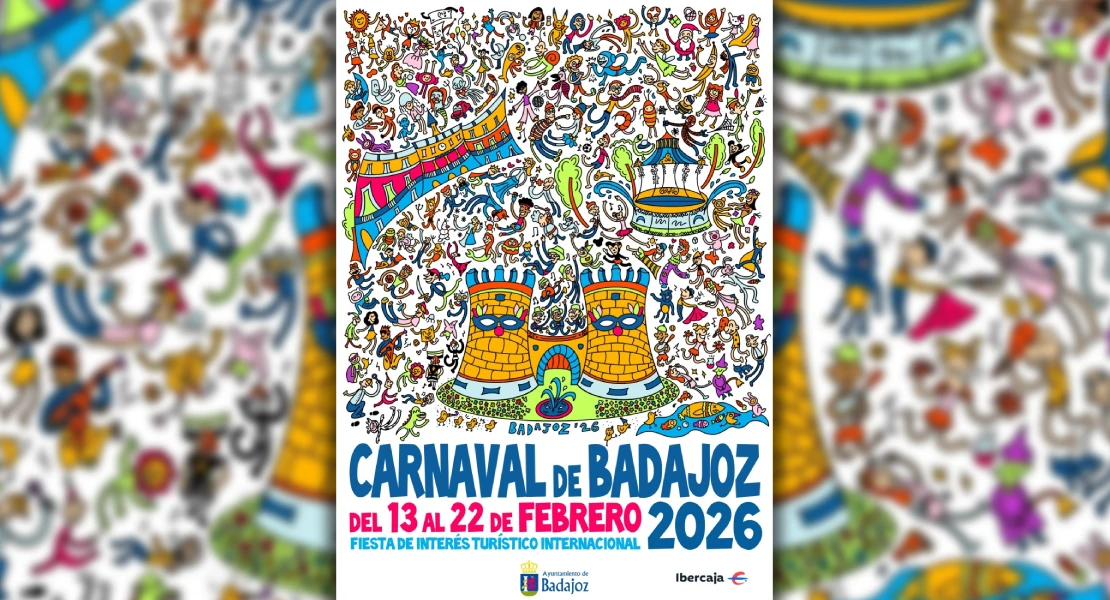 El Ayuntamiento de Badajoz ha presentado el cartel del Carnaval de Badajoz 2026, que este año se celebrará del viernes 13 de febrero al 22. Un total de 10 días para disfrutar de la fiesta grande de la ciudad.