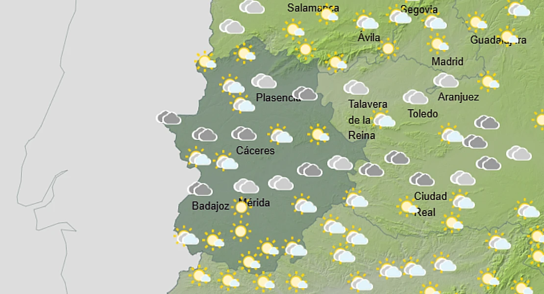 Por provincias, en Badajoz los termómetros oscilarán entre los 14 grados de máxima y los 3 de mínima. En Cáceres, las temperaturas se situarán entre los 12 grados de máxima y los 5 de mínima.