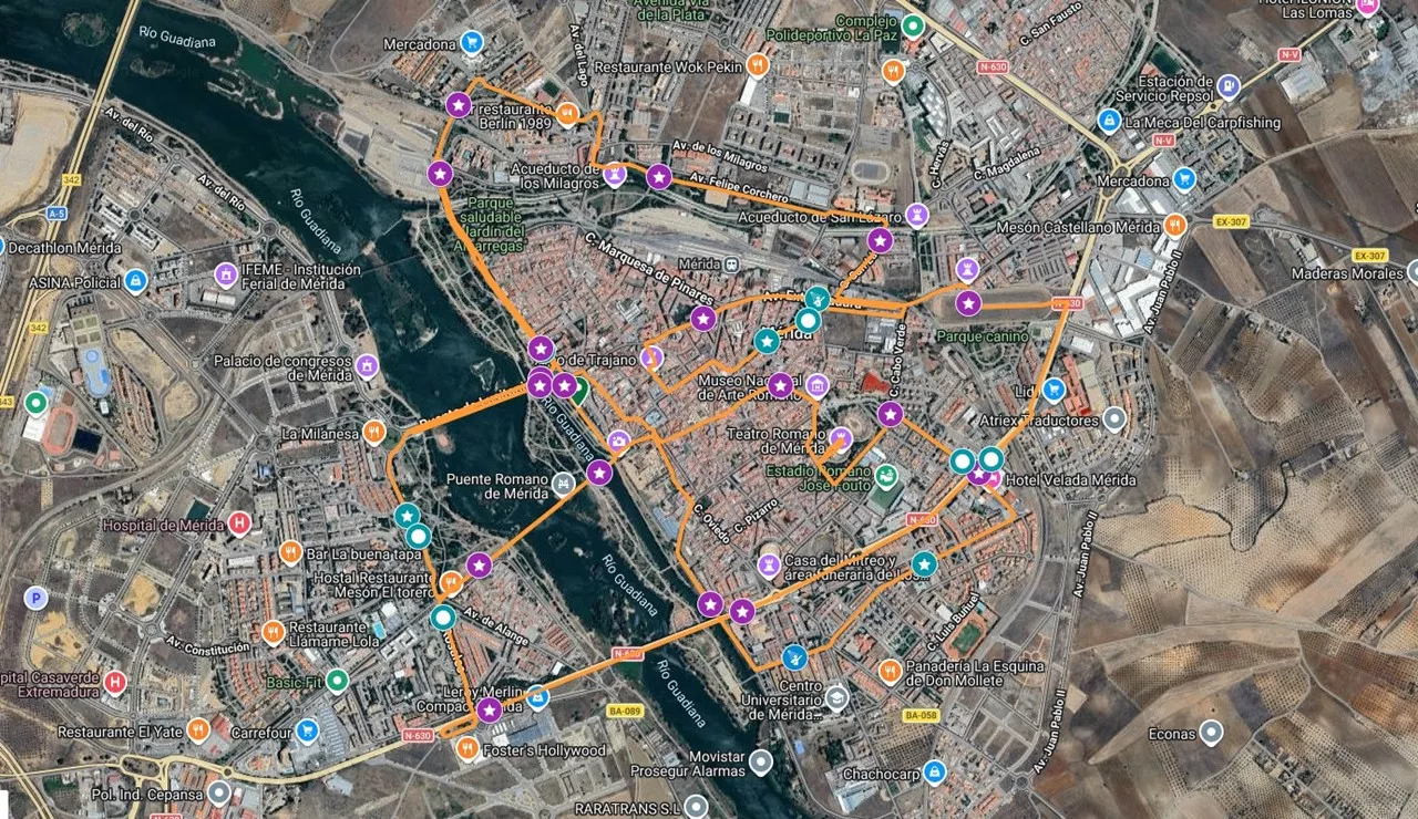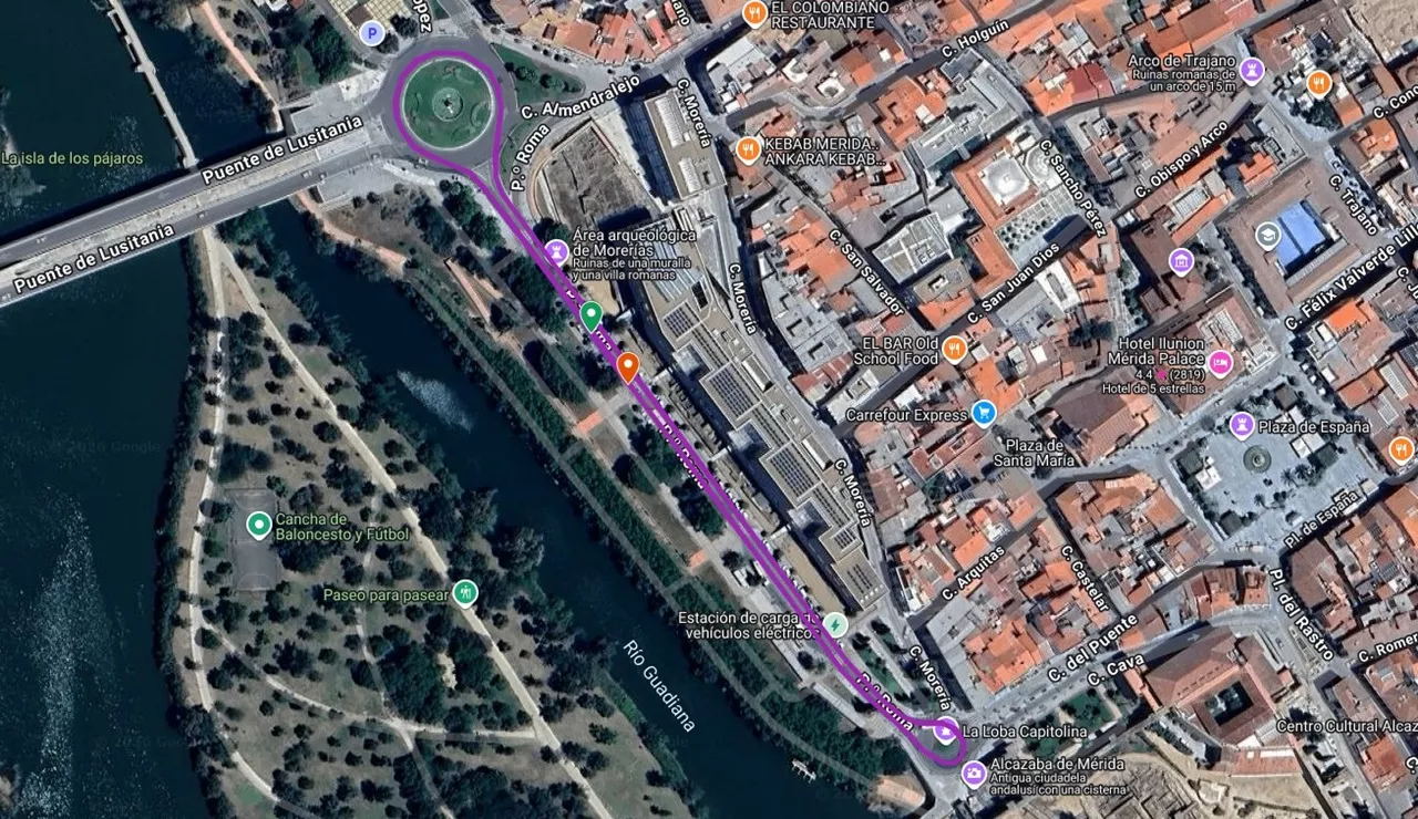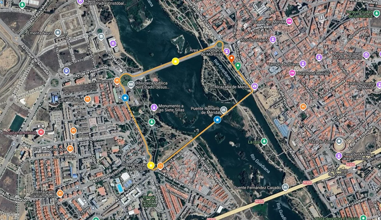 Recorrido de la Media Maratón (11 de abril): Paseo de Roma (salida), Glorieta Prima Porta, Avd. José Fernández López, Avd. Emérita Augusta, Glorieta de “El Ferial” (giro), Avd. Emérita Augusta, Avd. José Fernández López, Puente Lusitania (vuelta), Paseo de Roma, Puente Romano, Paseo de los Rosales, Avd. José Saramago Sousa, Avd. Reina Sofía, Glorieta María Auxiliadora (giro y sentido contrario en Avda. Reina Sofía hasta entrada al Hipódromo), Avd. Juan Carlos I, Avd. Extremadura, Almendralejo, Trav. Almendralejo, Plza. Constitución, Alvarado, Trajano, Félix Valverde Lillo, Delgado Valencia, Puerta de la Villa, Rambla Mártir Sta. Eulalia (bajada), Santa Lucía, López Puigcervert, Tte. Flomesta, Cabo Verde, Avd. Extremadura (parte baja), Avd. Felipe Corchero, Camino Viejo de Mirandilla (cruce), Parque Valle del Albarregas hasta salida por Vía de la Plata, Glorieta Vía de la Plata, Avd. Vía de la Plata, Ronda de los Eméritos, Avd. Emérita Augusta, Avd. José Fernández López, Puente Lusitania, Avd. Libertad, Puente Romano, Cava, Plaza del Rastro, Graciano, Plaza Sto. Domingo, Atarazanas, Anas, Avd. Lusitania, Octavio Augusto, Avd. Arzobispo Antonio Montero, Paseo José Álvarez Sáez de Buruaga, entrada Teatro Romano, paso por la Escena interior, salida por Paseo Sáez de Buruaga hacia José Ramón Mélida, José Ramón Mélida, Sagasta, Romero Leal, Plza. del Rastro, Plza. España (parte baja), Plz. Sta. María, San Salvador, Morerías, Almendralejo, Paseo de Roma (META).