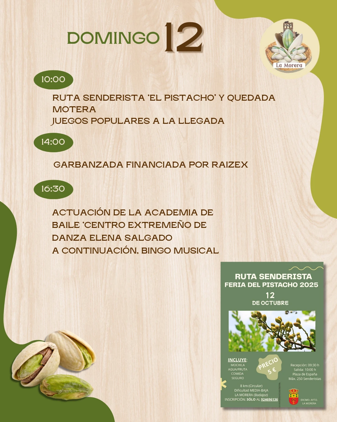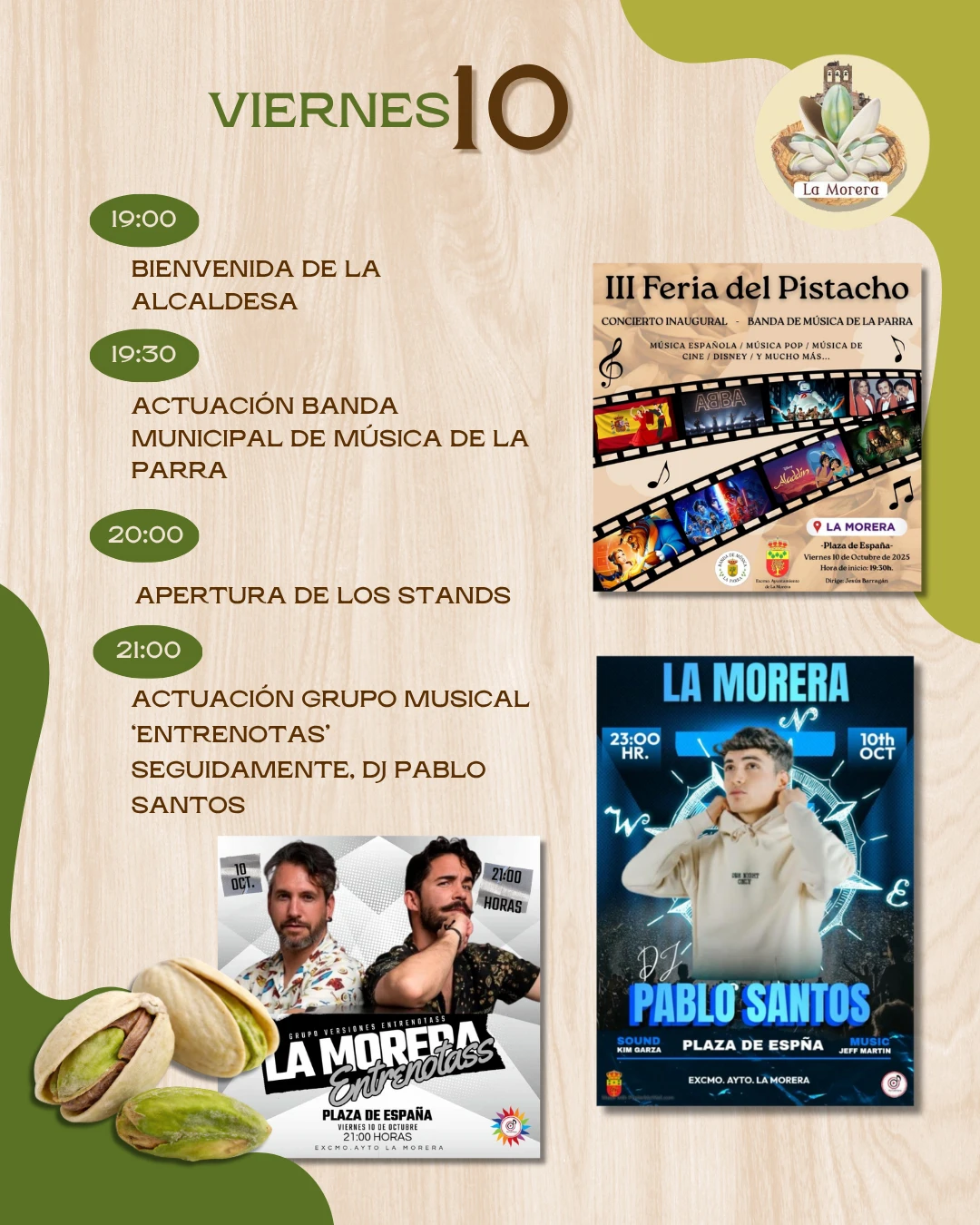 La Morera acoge el próximo día 10 una nueva edición de la Feria del Pistacho con una amplia programación en la que no podrá faltar este fruto seco, plato estrella durante el fin de semana.