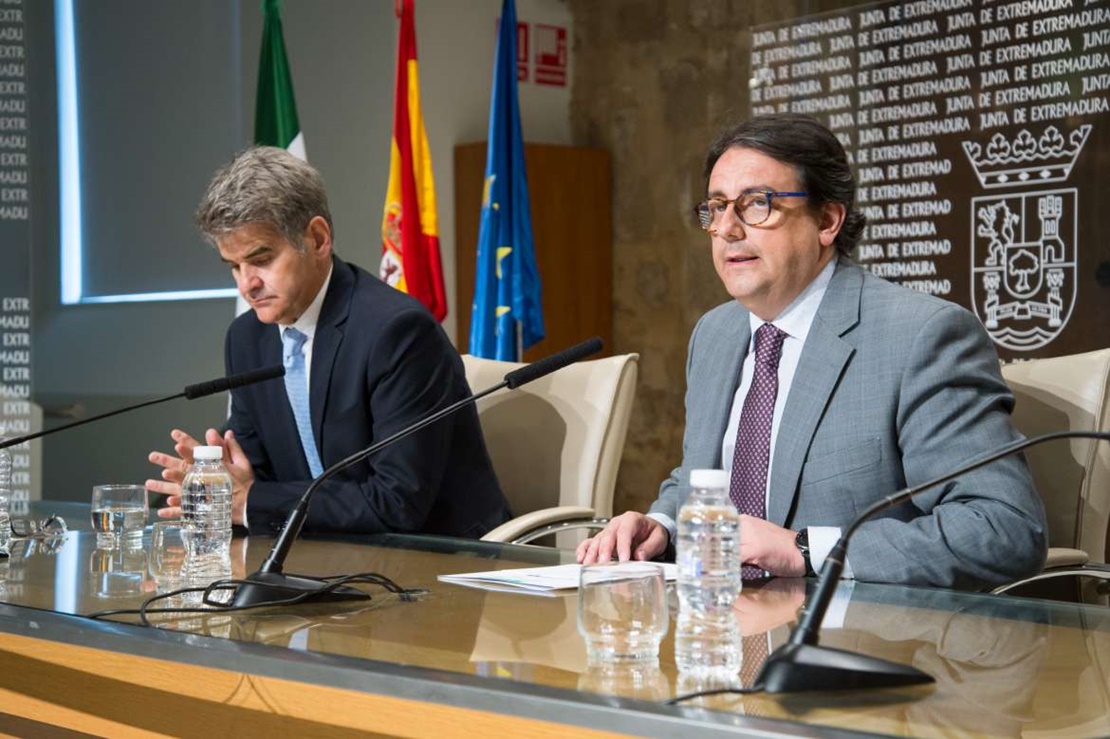 El presidente de la Junta de Extremadura, Guillermo Fernández Vara, y el vicepresidente de la Fundación Amancio Ortega Gaona, José Arnau Serra, han firmado en Mérida un convenio marco para la adquisición de equipamientos de alta tecnología por el Servicio Extremeño de Salud (SES), lo que permitirá la compra de 4 nuevos aceleradores lineales para los hospitales de Cáceres, Badajoz, Mérida y Plasencia.