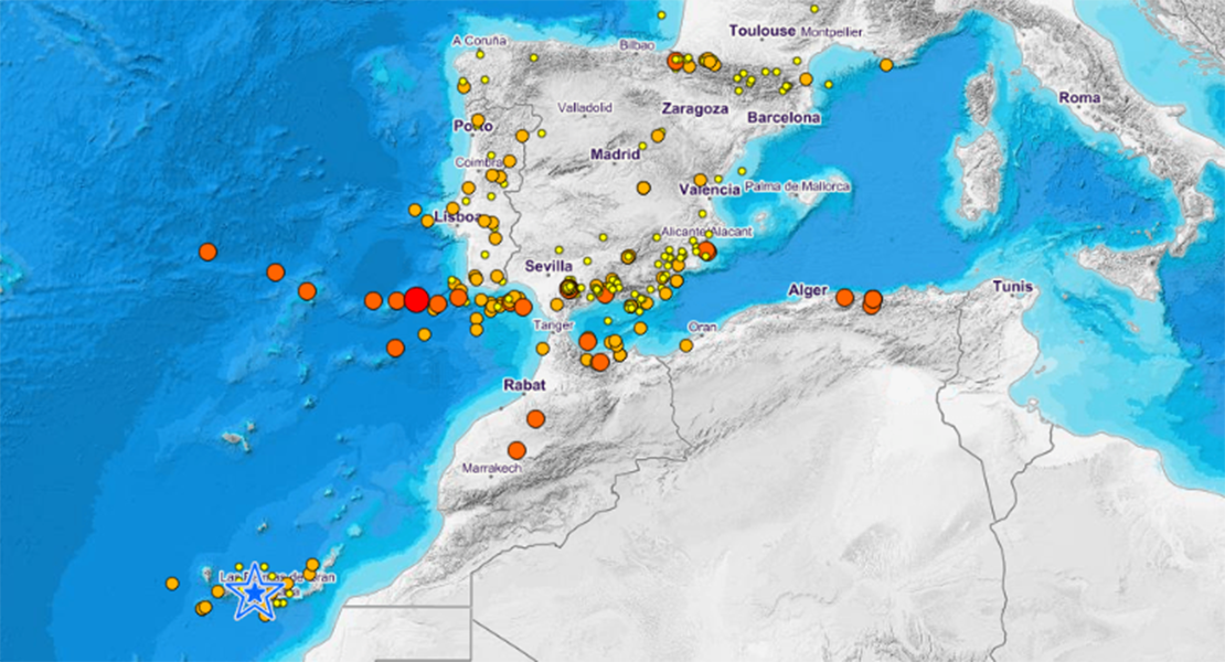 Los terremotos que el mapa muestra en los últimos 10 días, en el área de la península Ibérica, islas Baleares e islas Canarias rondan una magnitud igual o superior a 1.5, seísmos que el ser humano no suele notar, entre otras cosas por su profundidad y la debilidad de los temblores.