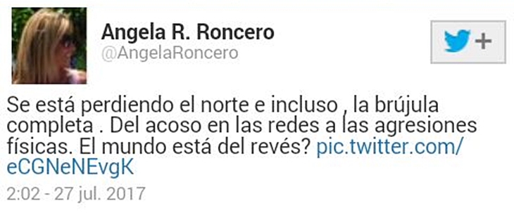 Se da la casualidad que hace unos meses la propia secretaria de Cs publicaba en su cuenta de Twitter la siguiente reflexión: “Se está perdiendo el norte e incluso, la brújula completa. Del acoso en las redes a las agresiones físicas. El mundo está del revés?”. Lo hacía en relación a la supuesta agresión sufrida por un funcionario municipal que trabaja en la Oficina de Turismo.