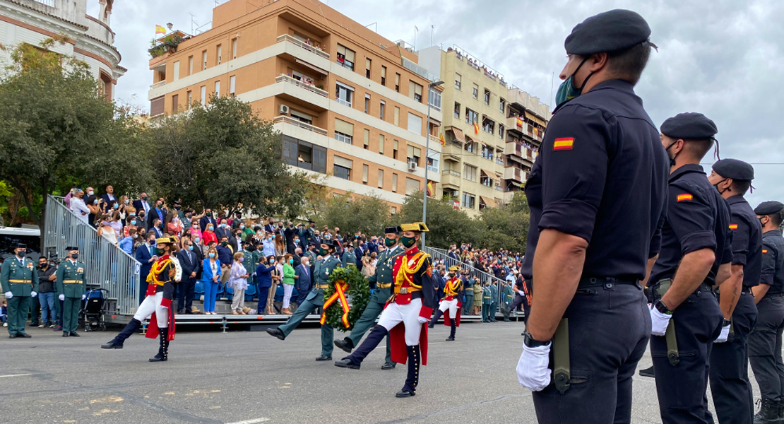 El desfile ha comenzado con el vuelo de una aeronave de ala fija y tres helicópteros. Posteriormente en el desfile a pie han participado una Escuadra del Sector de Tráfico de Andalucía, una Compañía de la Academia de Baeza, una Compañía de la Agrupación de Reserva y Seguridad, una Sección de guardias civiles andaluces de diferentes especialidades como el Servicio Marítimo, Servicio Fiscal, Servicio Cinológico y Servicio de Montaña; y una Sección de época del Colegio de Guardias Jóvenes de Valdemoro.