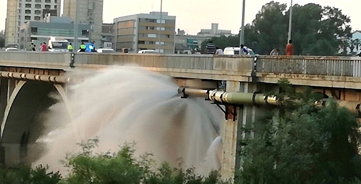 Tuberías de un puente que acostumbran a reventar cada cierto tiempo, con el coste que conlleva para los pacenses. Como el ocurrido en junio de 2017 tal y como puede apreciarse en esta imagen: