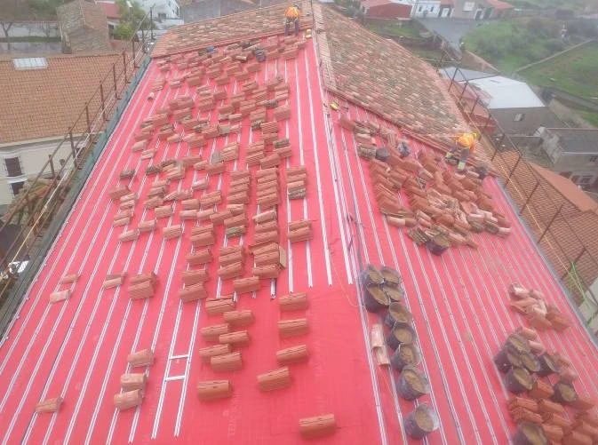 Entre los trabajos ejecutados destaca la demolición de la antigua cubierta deformada de la nave y la construcción de una nueva estructura metálica, utilizando los zunchos de hormigón existentes y recuperando parte del material cerámico original. También se ha llevado a cabo la revisión del resto de cubiertas, la reposición de tejas, la impermeabilización de la torre y la instalación de rejillas protectoras frente a aves.