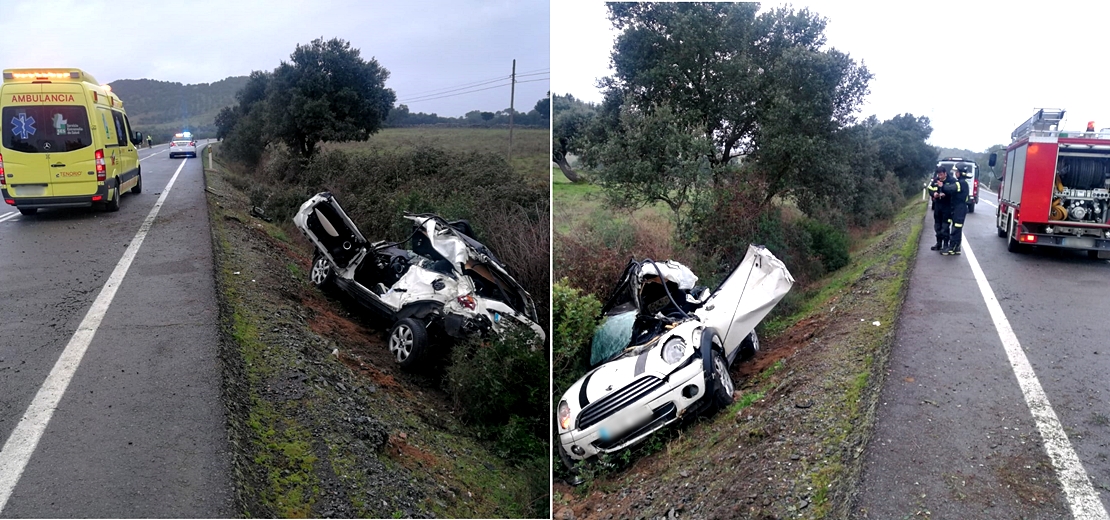 Se trata de un bombero de nuevo ingreso, quien sufría el accidente por salida de vía mientras se dirigía a su lugar de trabajo en el parque de bomberos de Jerez de los Caballeros.