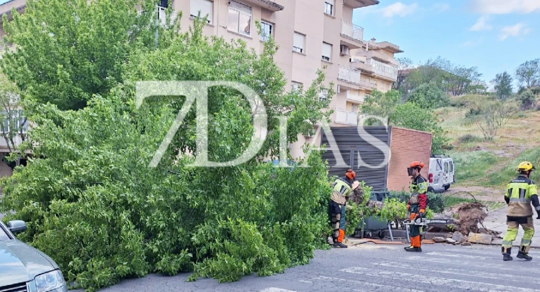 Cae un árbol de grandes dimensiones a la vía pública en Plasencia