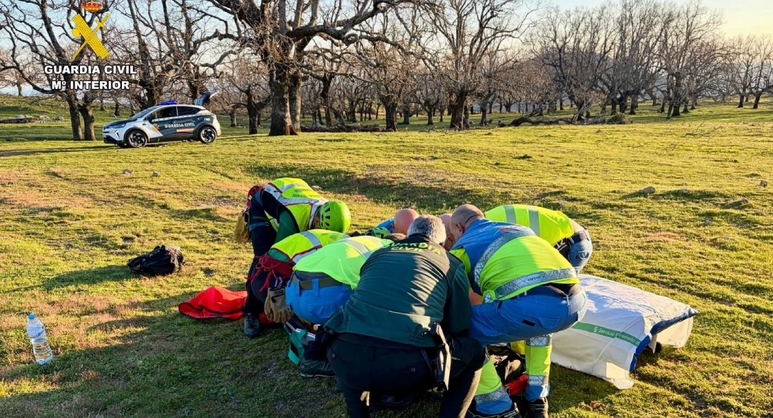 Tan pronto como la Central 062 de la Comandancia de Cáceres tuvo conocimiento de los hechos, se movilizó una patrulla de Seguridad Ciudadana, así como al Grupo de Rescate e Intervención en Montaña (GREIM) de Barco de Ávila, que se desplazó hasta el lugar en un helicóptero del Servicio Aéreo de la Guardia Civil.