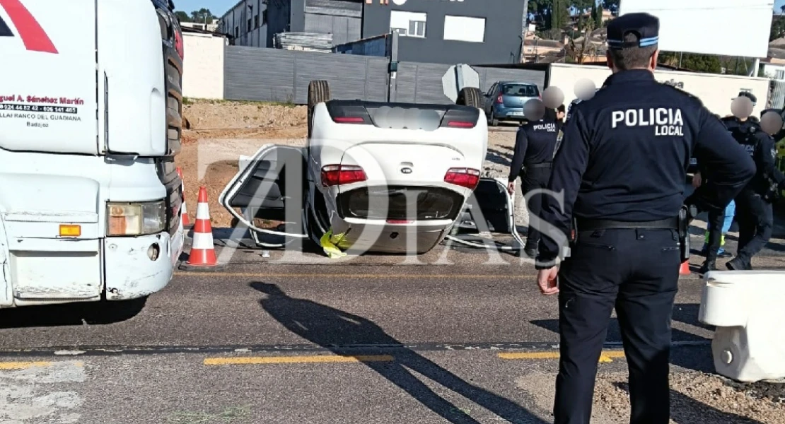 Un aparatoso vuelco a la entrada de Badajoz deja un hombre atrapado