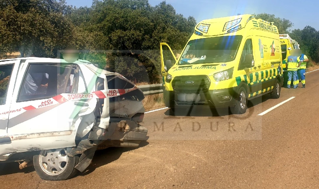 Un accidente de tráfico ocurrido este miércoles a mediodía, sobre las 13:15 horas, ha dejado tres personas heridas, entre ellas un menor de edad, tras un choque fronto-lateral entre dos vehículos en el kilómetro 13,400 de la carretera EX-310, que une Valverde de Leganés con Badajoz.