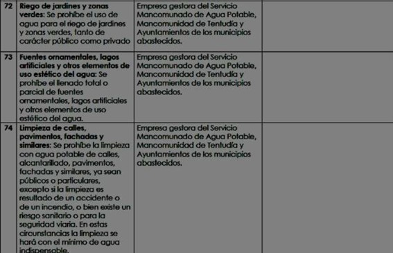 “Se realizarán pruebas nocturnas de cortes de agua en las diferentes localidades para posteriormente proceder a los cortes definitivos” indican desde la Mancomunidad. La suspensión de agua en los municipios será de una semana de duración, entre el 5 y 12 de julio, en horario de 23:00 horas a 6:00 horas.