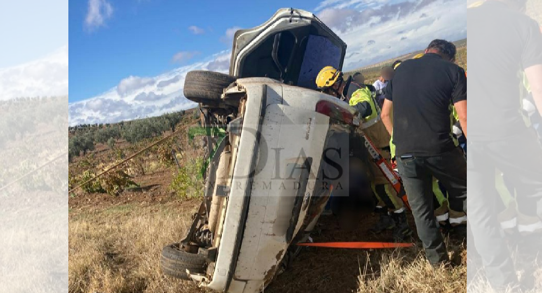 Varios heridos y una persona atrapada tras accidentarse en la BA-001 cerca de Aceuchal
