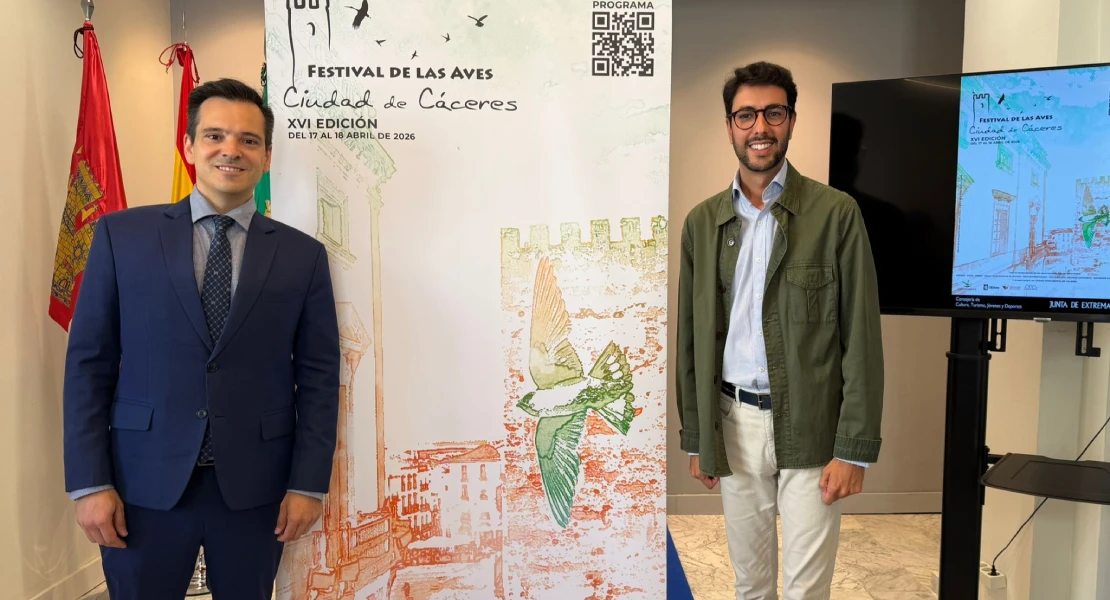 El Festival de las Aves Ciudad de Cáceres celebrará su XVI edición los próximos 17 y 18 de abril con una programación que combina divulgación científica, turismo ornitológico y actividades dirigidas a todos los públicos.