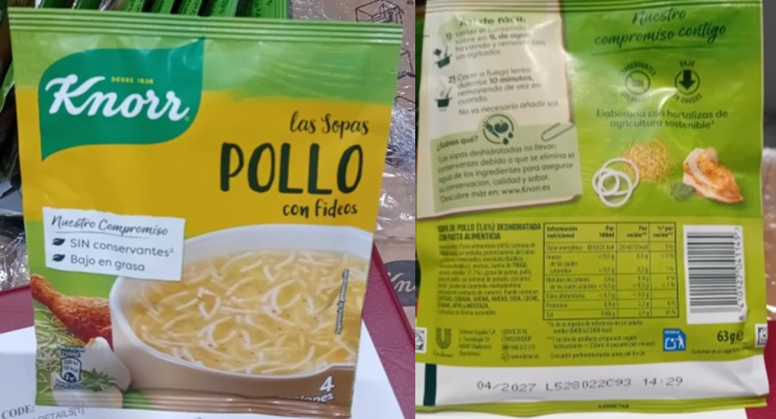 Detectan piezas de metal y caucho en sopa deshidratada de una conocida marca