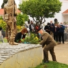 Tras depositar el ramo de flores en las tumbas colectivas, el General Jefe, junto a la concejal de Cultura y Cementerios, Paloma Morcillo del Valle, colocó una corona de flores en el monumento al soldado desconocido.